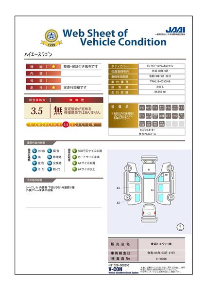 ※ 「定期点検整備なし(要整備箇所あり)」の場合、整備箇所につきましては、販売店へお問い合わせください。