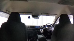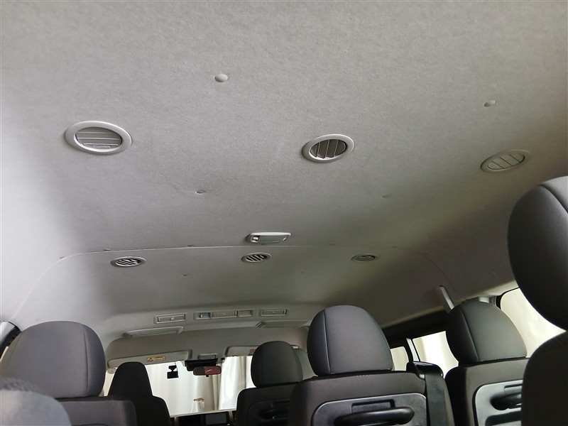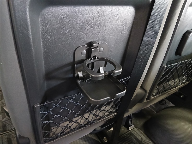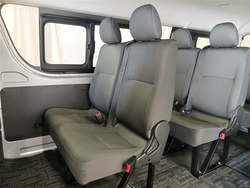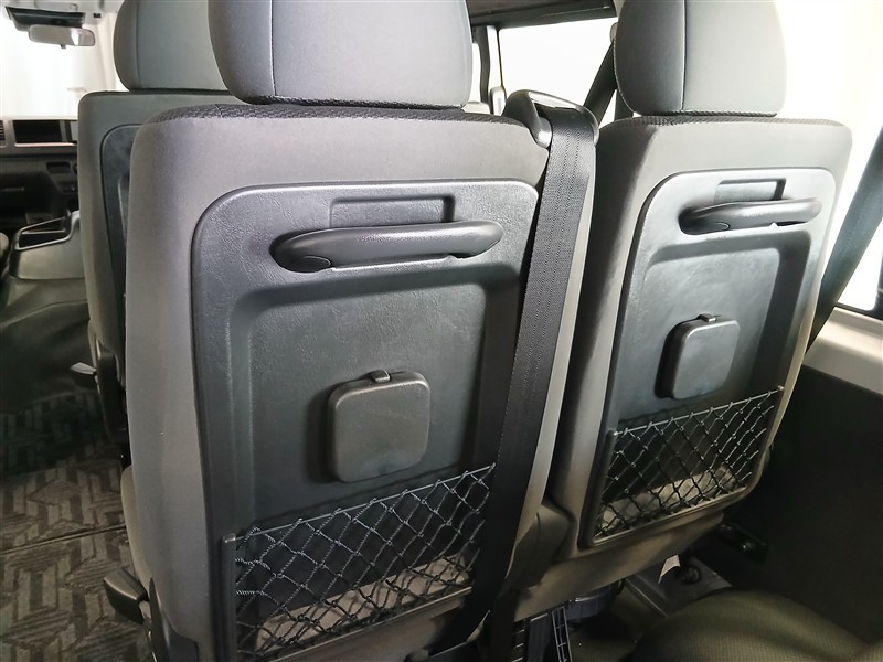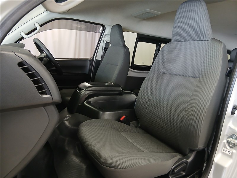 前席は視界が広く、ハイエースならではのゆったりとした着座姿勢で長時間の運転でも疲れにくい設計です