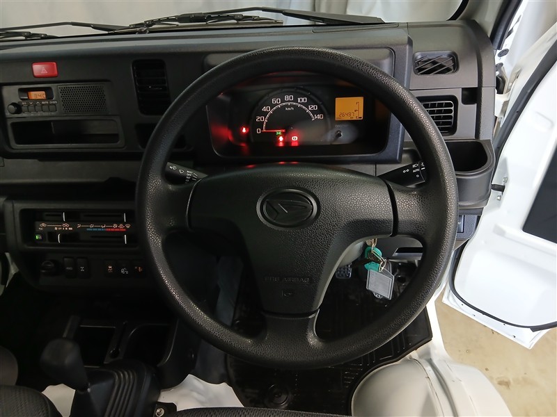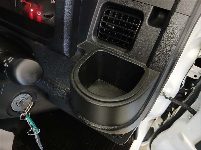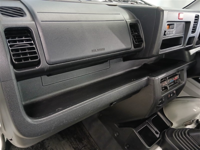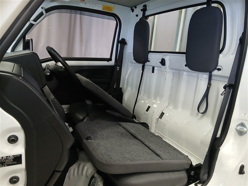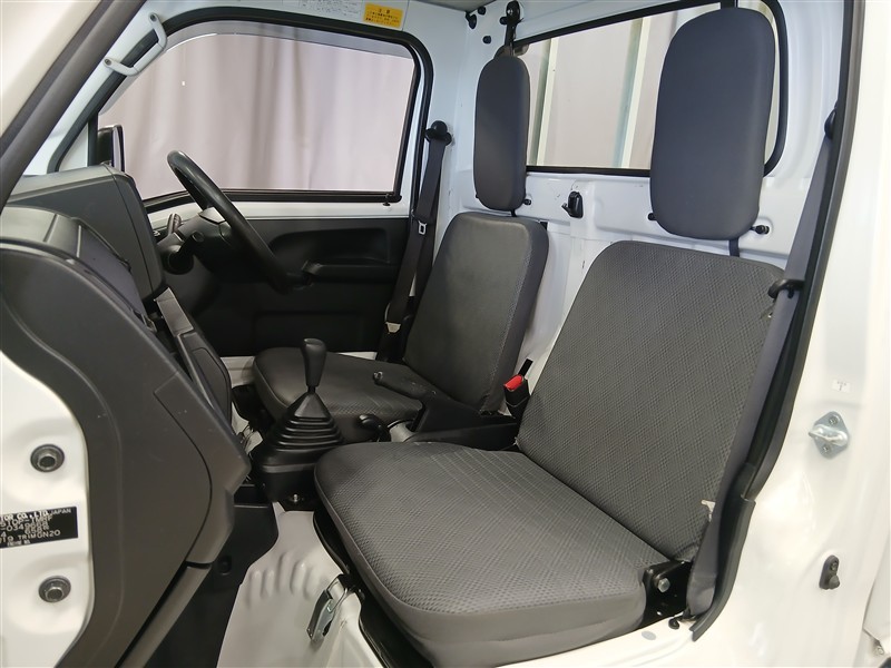 ビニールシートで汚れに強く、作業着のままでも気兼ねなく使える前席空間。掃除もしやすく、毎日の仕事にぴったりの実用性です