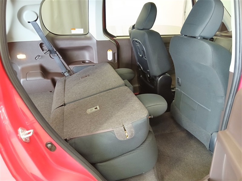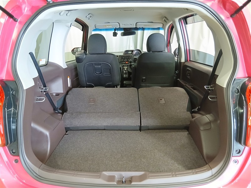 後席を倒せばさらに広いスペースが生まれ、大きめの荷物やまとめ買いにも柔軟に対応します