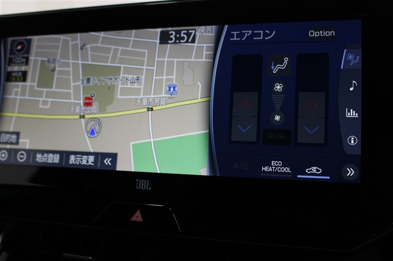 左右独立温度コントロール付オートエアコン。運転席と助手席、それぞれの体感温度の違いに合わせて設定が行えます。
