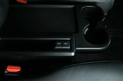 ◆セカンドシートの折りたたみ式サイドテーブルには、カップホルダーに加え、充電用USB端子を装備しています。