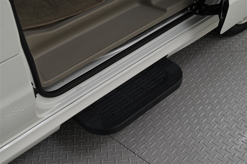 ■オートスライドステップが助手席側スライドドア部に設置されております。スライドドアの開閉に応じて自動で出・格納されます。