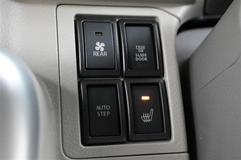 ■リヤヒータースイッチ、■パワースライドドアメインスイッチ、■オートスライドステップ OFF、■運転席シートヒーター 各スイッチ 装備