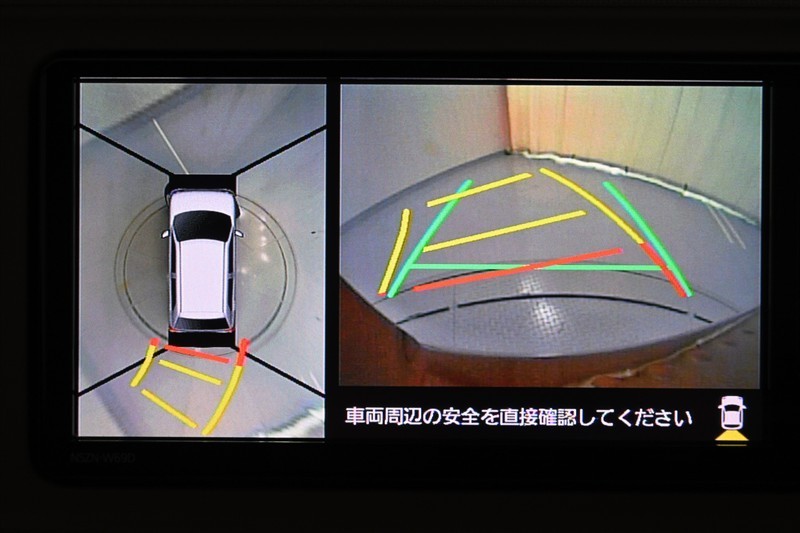 パノラマモニターです。 車を真上から見たような映像をディスプレイに表示。 車両周辺の状況をリアルタイムで確認できます。