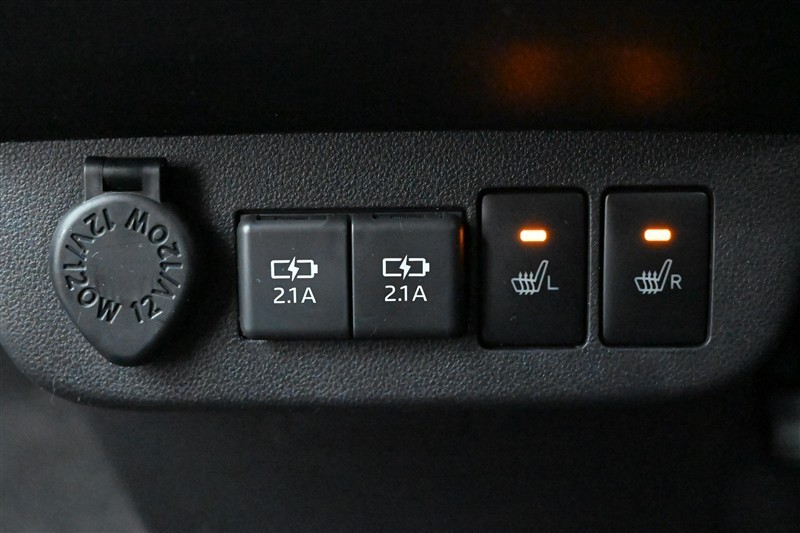 ■アクセサリーソケット(DC12V・120W)、■USB電源ソケット2個、■シートヒータースイッチ(運転席/助手席) 装備