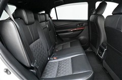 リヤシートです。 シートクッション横のレバー操作で、座ったままでもリクライニング調整ができます。