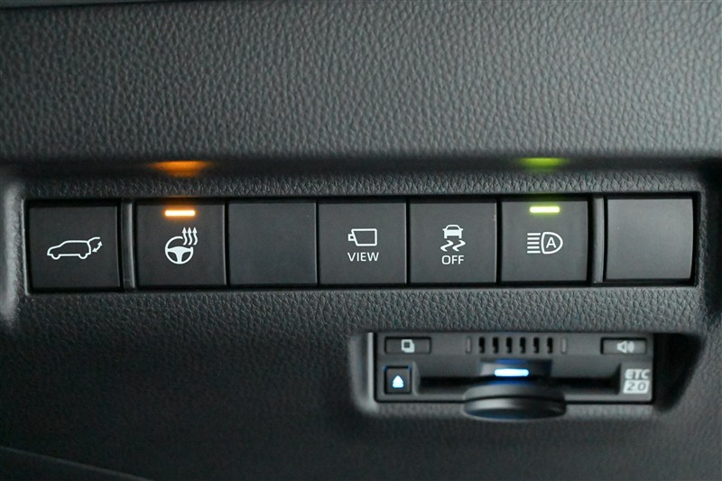 ■パワーバックドア、■ステアリングヒーター、■カメラ(パノラミックビューモニター)、■VSC OFF、■ハイビーム 各スイッチ 装備