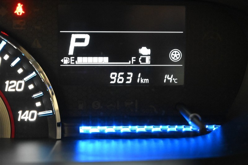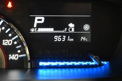 メーター全体です。 燃費効率がよい運転状態になると、メーターパネル内の照明色がブルーからグリーンに変化。運転状態を色で伝え、エコドライブをサポートします。