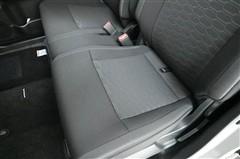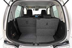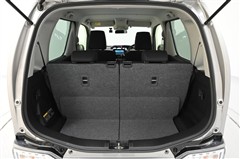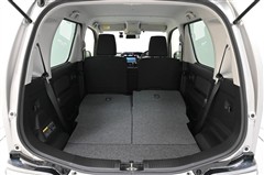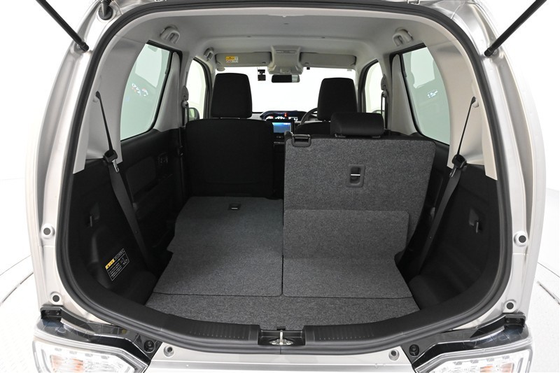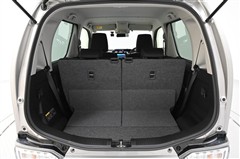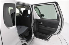 後席シートバックを片側のみ倒した状態。 丈の長い荷物を積むことができます。バックドア側からもワンタッチでリヤシートを倒すことができます。