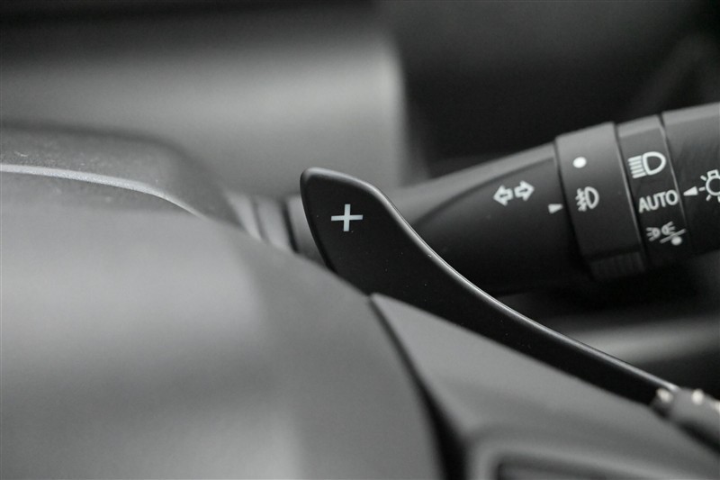 ■パドルシフトスイッチ 装備。 ステアリングの「+」と「-」のパドル(レバー)を指先で操作することで、素早いシフトアップ/ダウンが可能。スポーティーな走りが楽しめます。