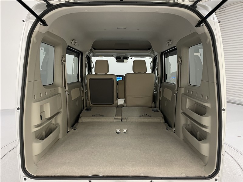 後部座席は、左右別々に前方へ格納できます。ゆとりある荷室床面長で、長尺物も余裕で積めます。