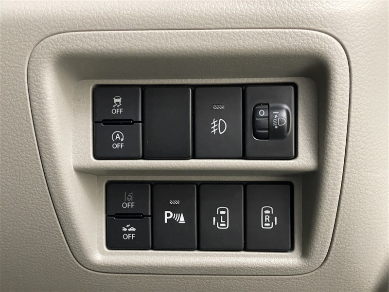 各種スイッチです。デュアルカメラブレーキサポート(DCBS)OFF、両側パワースライドドアなどを装備しています。
