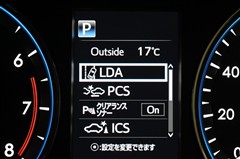 ◇道路上の白線(黄線)を認識し、車線逸脱の可能性をドライバーに知らせるとともに、逸脱を回避するためのハンドル操作の一部を支援する「LDA(ステアリング制御機能付)」などを装備しています。