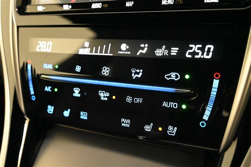■左右独立温度コントロールフルオートエアコン(「ナノイー」、ミラーヒーター付)装備。 運転席/助手席それぞれ温度設定が可能。