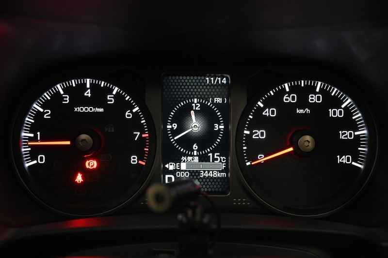 『2眼メーター(タコメーター付)』+『TFTカラーマルチインフォメーションディスプレイ』を装備しております。明るく見やすいメーターです。