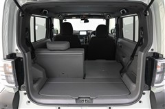 ◇「完全フラットスタイル」  リヤシートバックを両側前に倒せば、フレキシブルボードと合わせて、ほぼ隙間のないフラットで広いスペースが出現。大きなモノも、長いモノも、いろいろなモノがたくさん載せられます