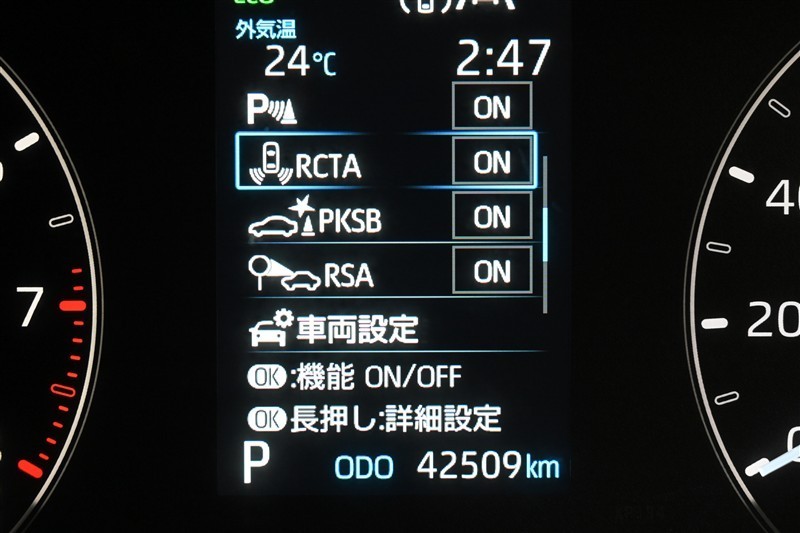 ◇バックで出庫する際などに、自車の左右後方から接近してくる車両をドライバーに知らせる「リヤクロストラフィックアラート(RCTA)」などを装備しています。