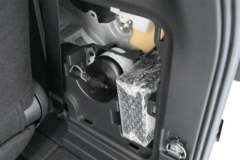 タイヤパンク応急修理キット 装備(ラゲージ側面に収納 ※カバーを外して撮影)