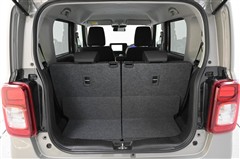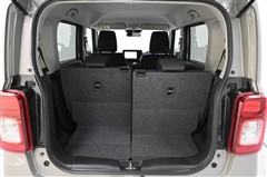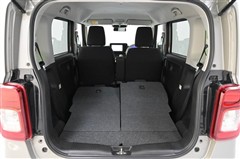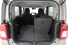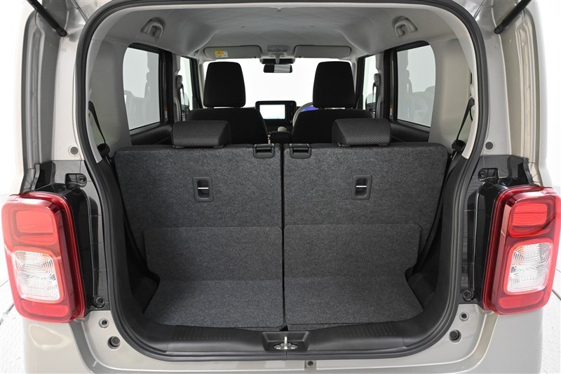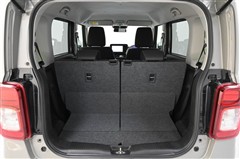後席シートバックを片側のみ倒した状態。 丈の長い荷物を積むことができます。バックドア側からもワンタッチでリヤシートを倒すことができます。