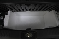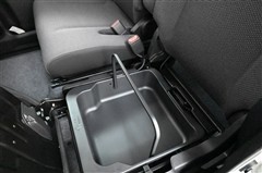 助手席を持ち上げた状態です。取っ手付き脱着可能なボックスが現れます。