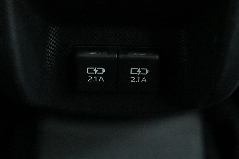 ■充電用USB端子2個(コンソールボックス後部に装備) 後席のゲストの方のスマホの充電などにお役立ちします。