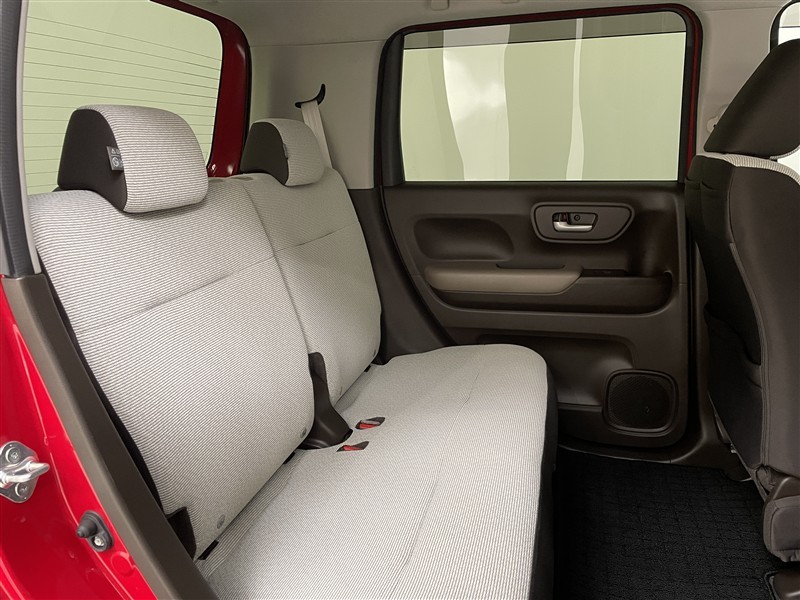 後席の肩口にある操作レバーを引くだけで、背もたれを左右別々に、前に倒すことができます。長さのある荷物もさっと収納できます。