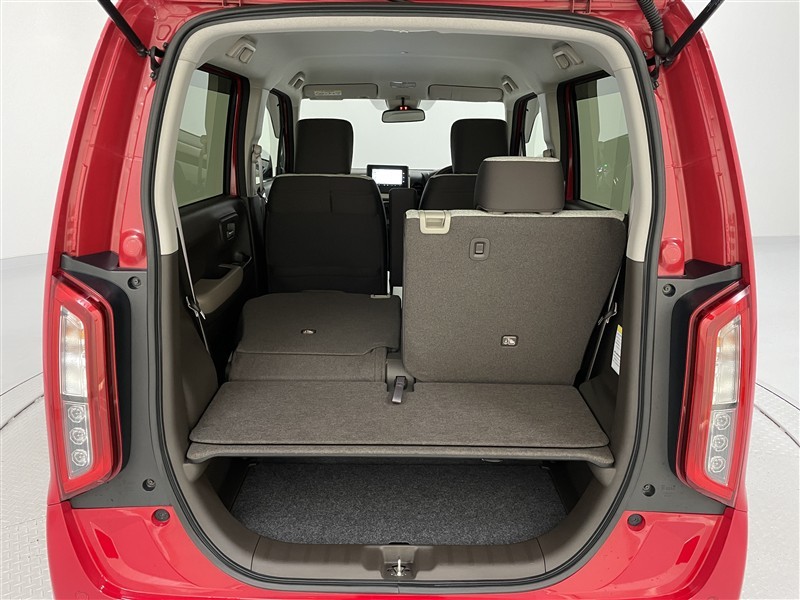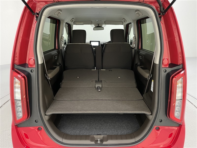 ◇ビッグラゲッジモードです。 後席の背もたれを前に倒すと、ほぼ段差のない広い空間が出現。荷室だけでは積みきれない大きな荷物にも対応できます。