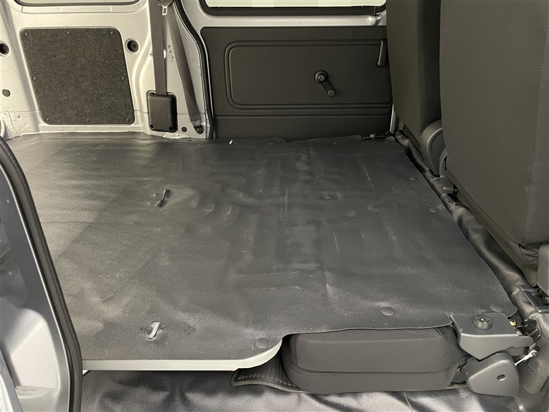 後部座席はベンチタイプです。簡単な操作で座席を足元スペースに格納できます。