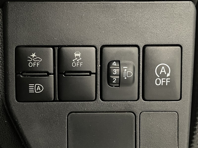 ■スマートアシストOFF、■VSC & TRC OFF、■オートハイビーム、■eco IDEL OFF 各スイッチ、■手動光軸調整ダイヤル 装備