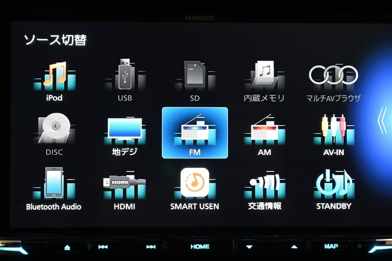 ナビ オーディオソース選択画面です。 ◇AM/FMチューナーなどを装備しています。