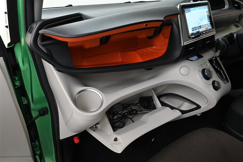 ■アッパーボックス、■カップホルダー、■オープントレイ、■グローブボックス、■コンソールサイドポケット 装備。  助手席側に充実した収納スペースを確保。