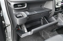 ■運転席アッパーボックス 装備。 フタ付の収納スペースです。運転席の目の前にあるので、必要な時にすぐに取り出せます。