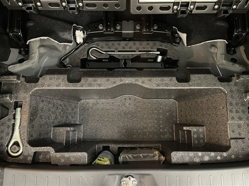 デッキボードの下には収納スペースがあります。ボードをフックで固定すれば、背の高い荷物も積むことが出来ます。 ※タイヤパンク応急修理キット装備