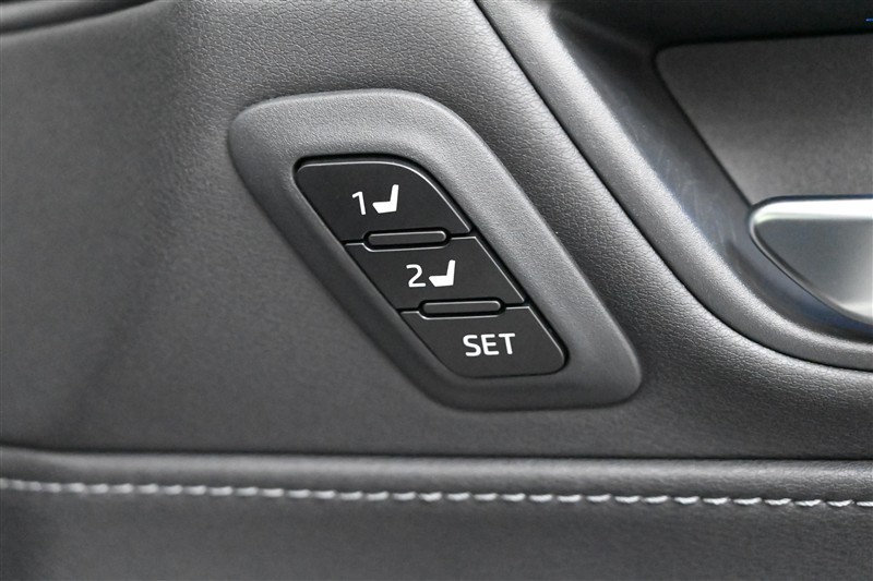 運転席は、前後スライド+リクライニング+シート上下+チルトアジャスターの8ウェイパワーシートで、さらに電動ランバーサポートも装備しています。