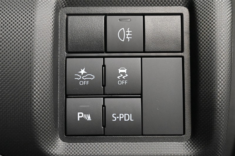 ■リヤフォグランプスイッチ、■スマートアシストOFF、■VSC・TRC OFF、■コーナーセンサースイッチ、■S-PDL 各スイッチ装備。