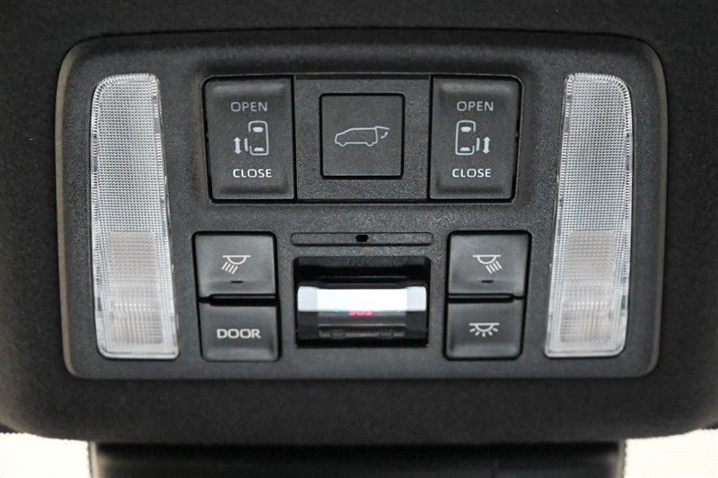 前席天井には運転席、助手席を別々に照らせるパーソナルランプを装備。パワースライドドアのスイッチも装備しています。