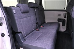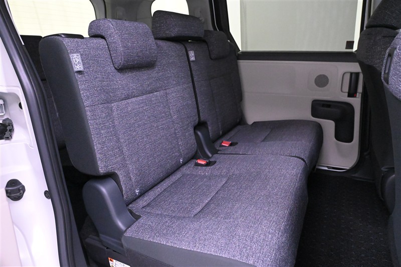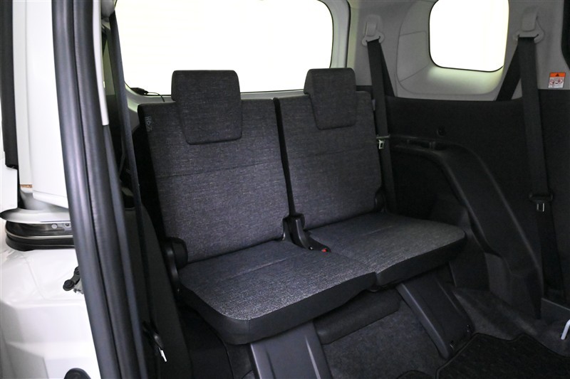 3列目シートです。 大人がしっかり座れる幅広のベンチ風シートです。ワンタッチのレバー操作で2列目シートを折りたためるため、3列目への乗り降りもラクにできます。