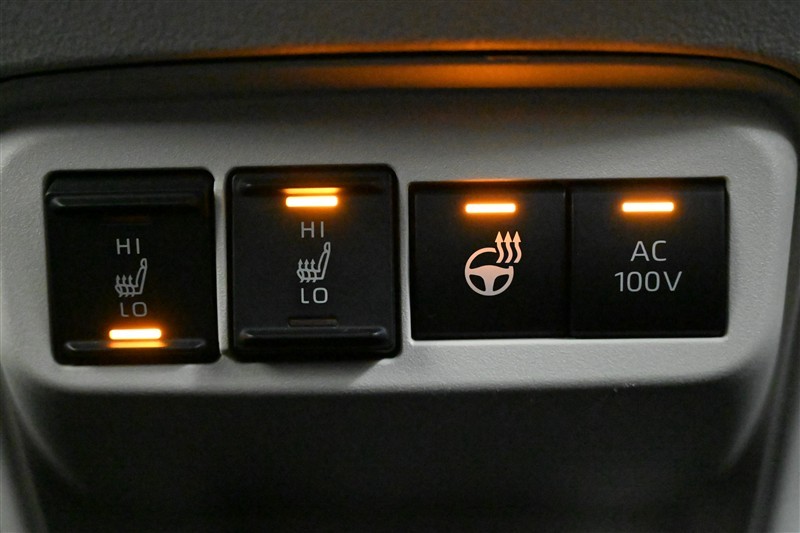 ■シートヒーター(運転席 ・ 助手席)、■ステアリングヒーター、■AC100V 各スイッチ 装備。 寒い日の運転をサポート。シートヒーターは 『HI - LO』の2段階切替が可能です。