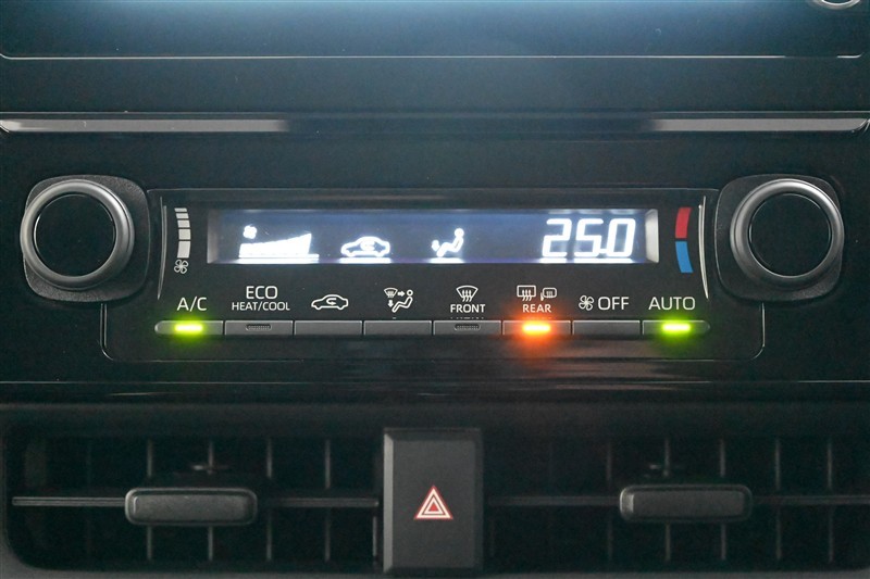 オートエアコン(ミラーヒーター付)です。 設定温度に合わせて吹き出し口と風量を自動で調整します。