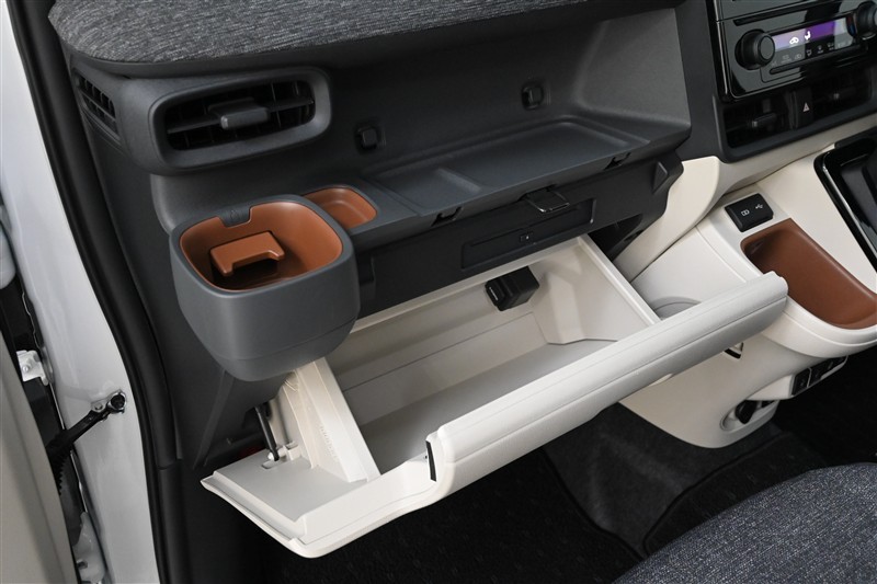 ■助手席カップホルダー/小物入れ、■オープントレイ、■グローブボックス 装備  グローブボックスは車検証や取扱説明書を保管するのに便利です。