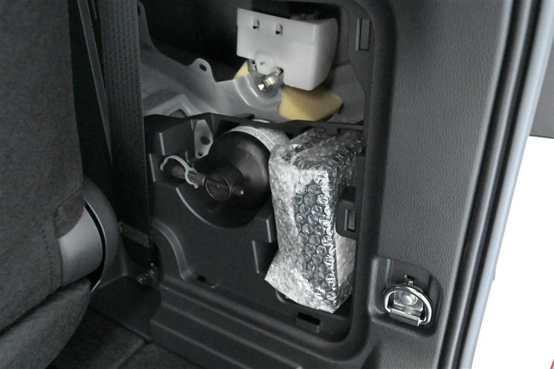 タイヤパンク応急修理キット 装備(ラゲージ側面に収納 ※カバーを外して撮影)