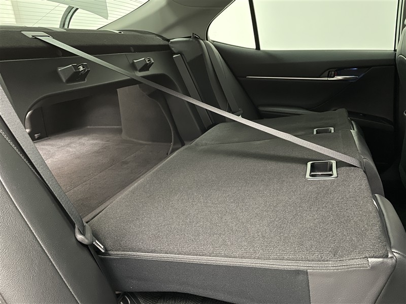 トランク内のレバーを引くとリヤシートのシートバックを前倒しできます。(6:4分割可倒式) 乗車スペースとつながり、大きな荷物や丈の長い荷物を積むことができます。