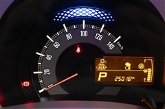メーター全体です。燃費効率がよい運転状態になると、メーターパネル内の照明色がブルーからグリーンに変化。運転状態を色で伝え、エコドライブをサポートします。