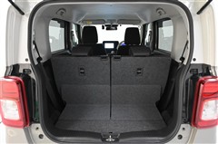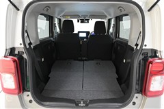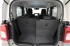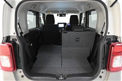後席シートバックを片側のみ倒した状態。 丈の長い荷物を積むことができます。バックドア側からもワンタッチでリヤシートを倒すことができます。