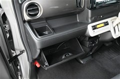 助手席を持ち上げた状態です。取っ手付き脱着可能なボックスが現れます。