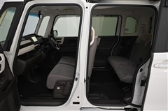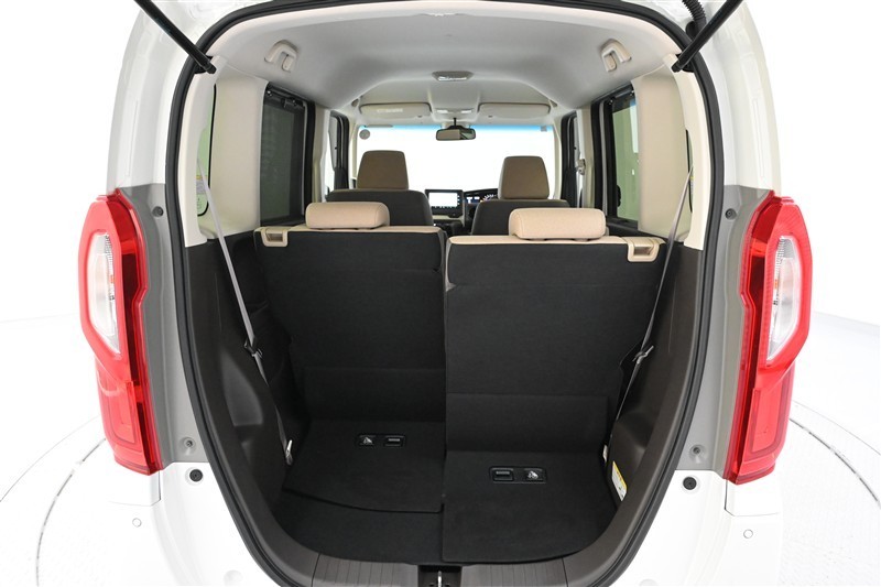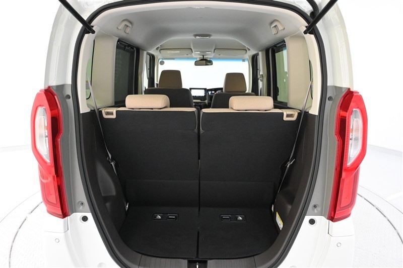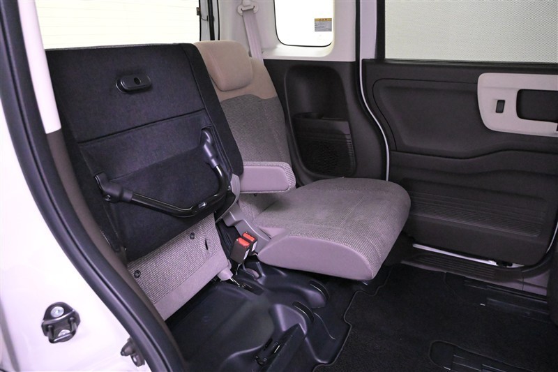 ◇後席は、左右独立で前後スライド調整が可能です。スライドボードも連動して動くので、荷物の量に合わせて荷室の広さを変えられます。※助手席側後席を前方にスライドした状態です。
