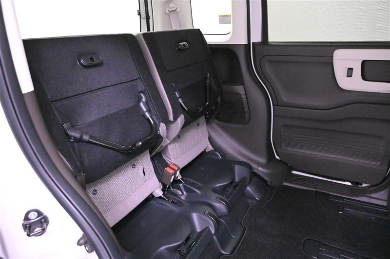 ◇はね上げられるリアシート  後席はチップアップ機構により、左右別々に座面の跳ね上げが可能。 広い足元を活かして、背の高い荷物も余裕をもって積み込めます。
