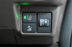 ■路外逸脱抑制、■CMBS(衝突軽減ブレーキ)OFF、■ヘッドライトレベリングダイヤル 各スイッチを装備。