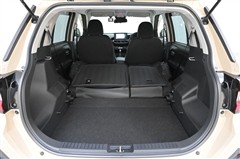 リヤシートのシートバックを両側 前倒しした状態です。 大きな荷物や幅のあるものを積むことができます。